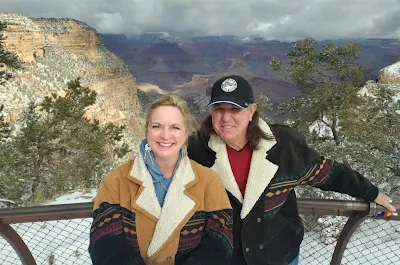 Dee was accurate when we reached the south rim. Freshly fallen snow from the previous night had left really slick and icy walkways.