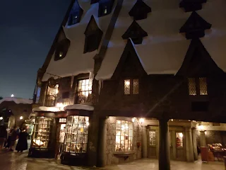 Thanks to the brilliance and creativity of  writer J. K. Rowling we were standing on a street corner  in Diagon Alley - a place where Harry, Hermione, and Ron spent many hours looking through fabulous stores full of imagination, sorcery and magic. They learned many lessons here that were used for the multitude of adventures they were involved in during their education at Hogwarts.